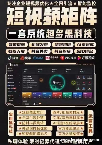 矩阵网站系统,包含视频剪辑,自动回复,精准投放等各种功能,大数据引流,精准推广短视频,无限账号绑定,垂直矩阵管理,文案由AI自动生成,多及代理推广模式,推动短视频更好运营。更有多种实用网站等待开发。更多网站、小程序开发方案可咨询!! 联系我时,请说是在好推宝看到的,谢谢!